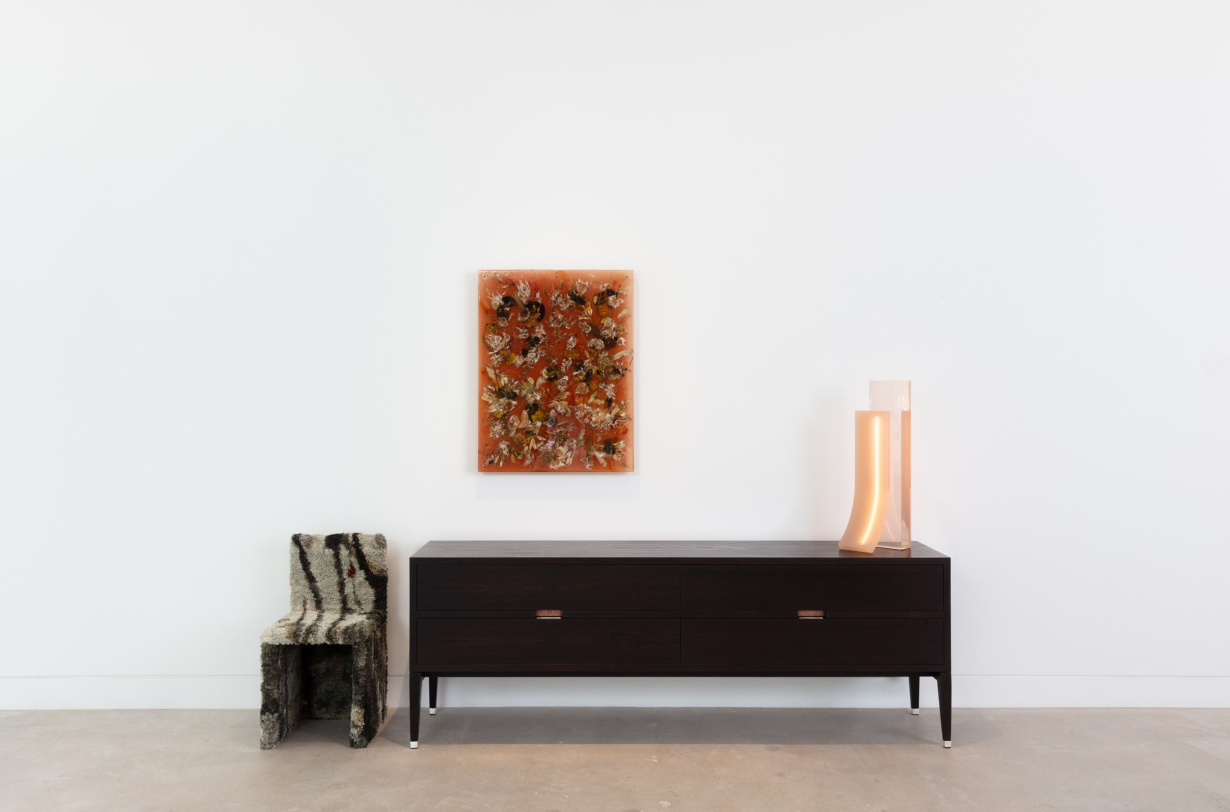 Damien WrightTread Lightly, 202510,000 year old Ancient River Red Gum, copper, lost wax sterling silver drawer pulls and feet by Jeweller Katherine Bowman215 x 46 x 75 cm -