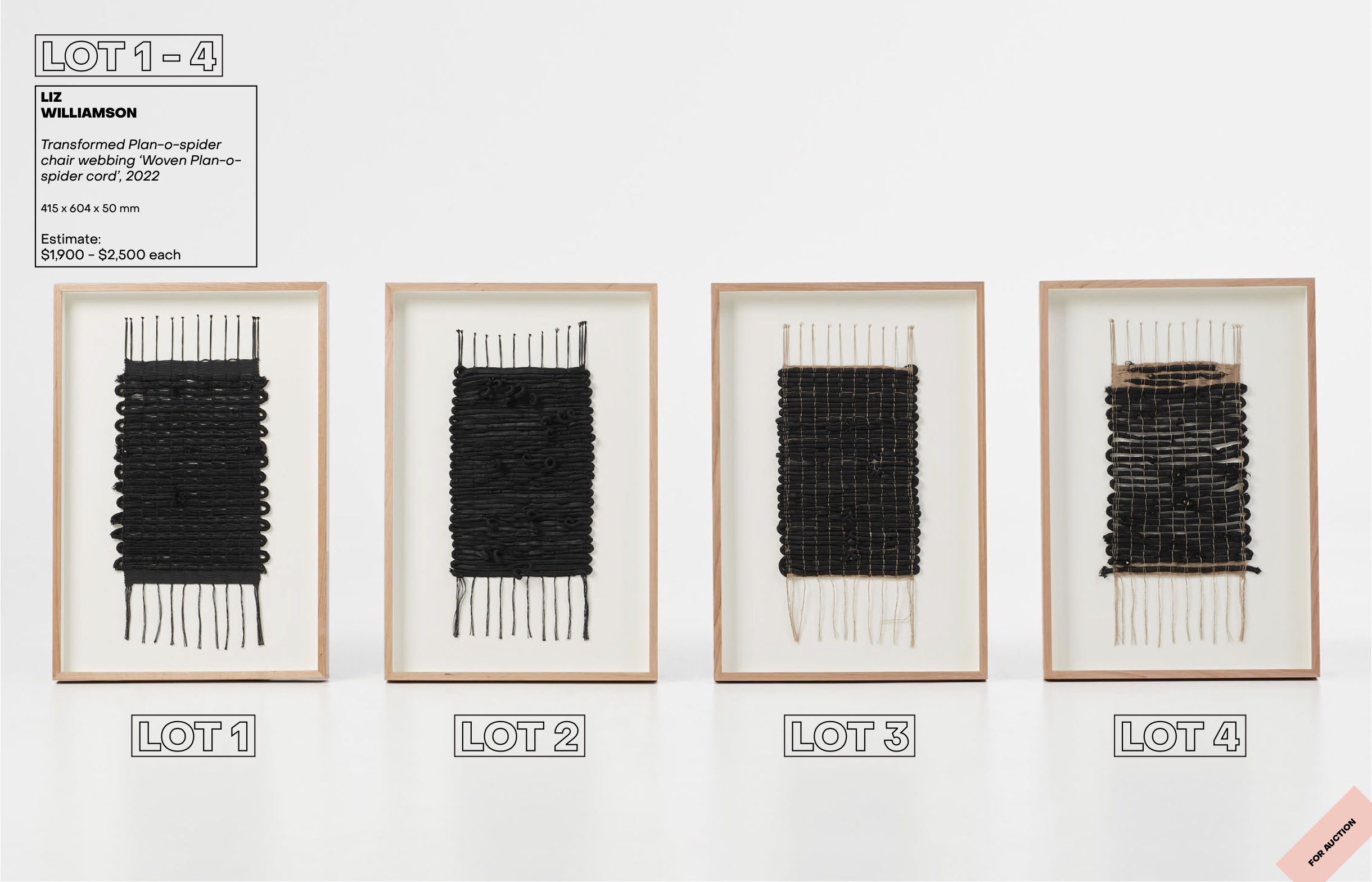 Master weaver Liz Williamson and collaborator Tulla Carson were tasked with the challenge of restoring two extraordinary ’Plan-o-spider’ chairs owned by Sydney gallerist Sally Dan- Cuthbert. These chairs, designed in France by Hoffer and manufactured by Plan in the 1950s, presented a range of technical challenges. With the assistance of Nicole Robins and Chris Hitch, Liz and Tulla built on their provenance and stretched the boundaries of restoration with new materials and a colour palette that brings these once disintegrating chairs into the 21st century. Liz then used the scrap elastic from the old webbing to create a series of elegant weavings, challenging the expectations of what can be done with waste.