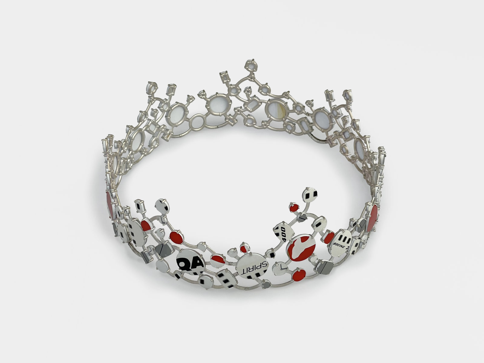 Contemporary jeweller Kyoko Hashimoto repairs and transforms two broken model aeroplanes from musician Hugo Gruzman of Flight Facilities, one of them being a scale model of a Cessna 310 belonging to Hugo’s grandfather, air-sea rescue inventor Laurie Gruzman, a formative influence on the name and concept of Hugo’s band. In collaboration with Australian-born, Texas-based visual artist Ebony Fleur, a 3D animated version of the model aeroplane in flight was also created and minted as an NFT. Rounding off her transformative repairs, Kyoko transformed the second model, a Qantas 747, the “Queen of Skies”, into the zenith of jewellery typologies: a crown.
