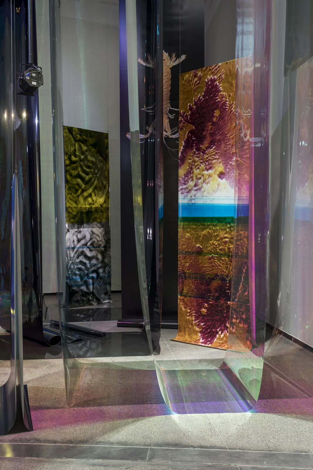 The central question of the exhibition is what it means to "become ocean," that is, to surrender our human bodies to the vast body of water that covers over two-thirds of the Earth. Scientists have long studied the aquatic origins of life on our planet, initially considering the possibility of originating in shallow tidal pools and hot springs. Modern research indicates that life may have originated near deep-sea hydrothermal vents, as the chemicals present there and the energy supplied could have fueled numerous reactions essential for the evolution of life.