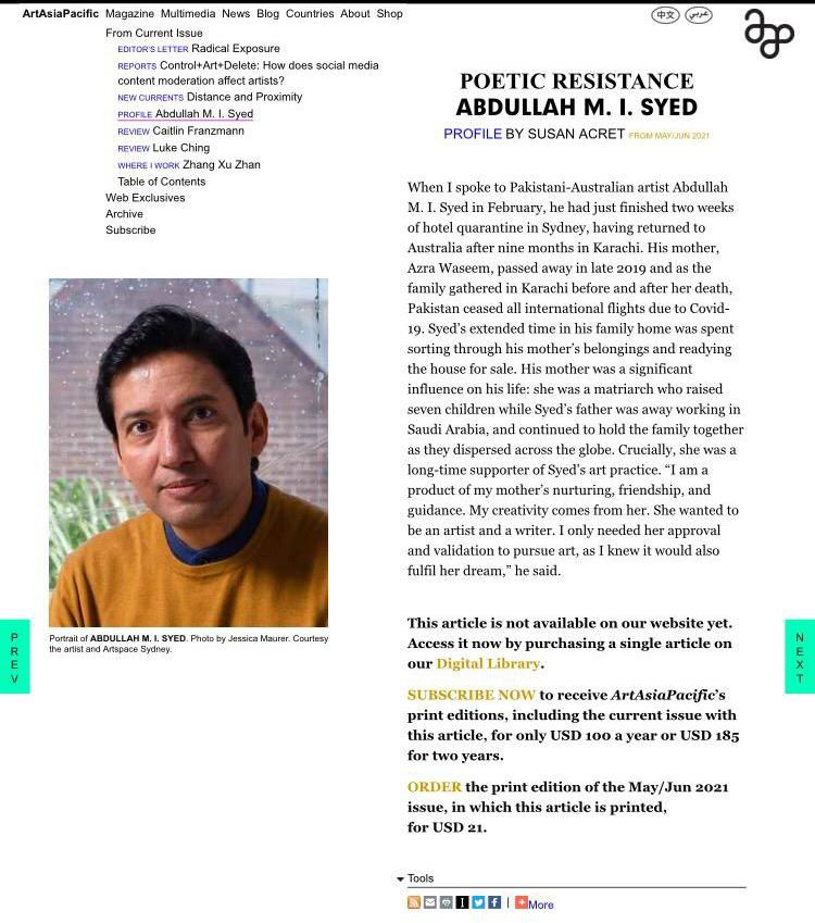 Susan Acret, ArtAsiaPacific, May 3, 2021
