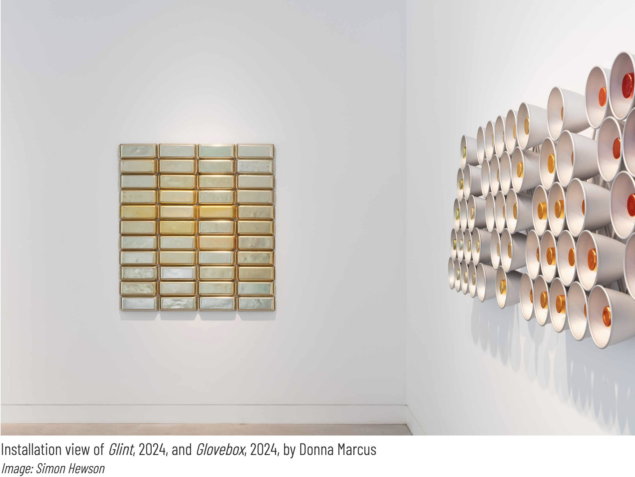“The series began with After Albers, 1998, and is completed by Glovebox, 2024. Glint is the newest work in the show and unsurprisingly as such is the marker for the next series of works. I believe that exhibiting your work is the opportunity to stand back and review, which inevitably leads to new directions and ideas,” concludes the artist.