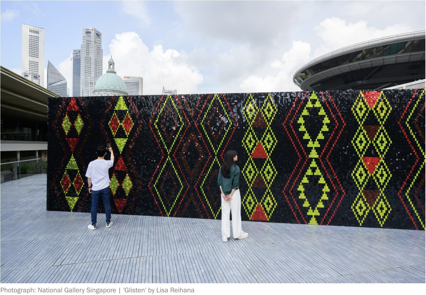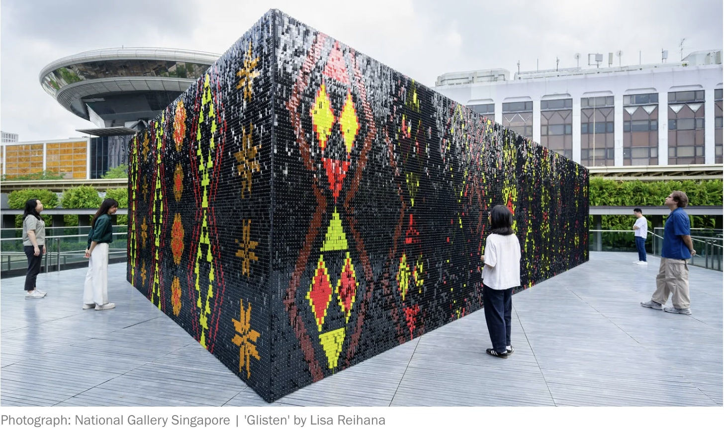 National Gallery’s Ng Teng Fong Roof Garden has seen several rotations of art installations throughout its time as part of its annual ‘Commission Series’ where one leading artist is invited to showcase site-specific works. This year for its seventh edition, New Zealander artist Lisa Reihana’s outdoor installation Glisten takes the stage.