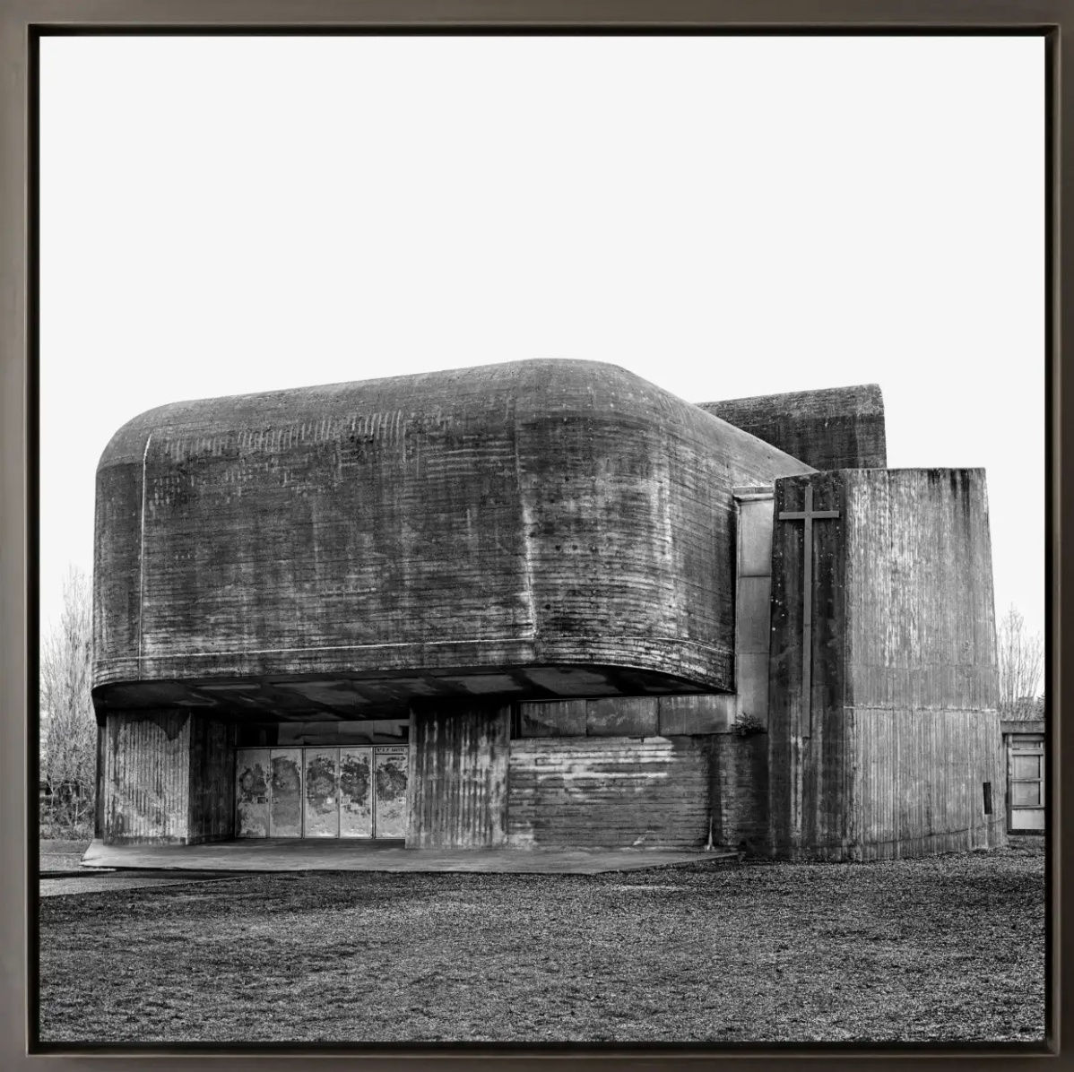 "Nevers" depicts the Church of Sainte Bernadette of Banlay, in central France, designed by philosopher Virilio and architect Claude Parent as an evocation of the bunkers along the Normandy coastline. Don Cameron